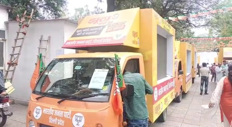 14 वैनों को दिल्ली बीजेपी प्रदेश कार्यालय से दिखाई गई हरी झंडी