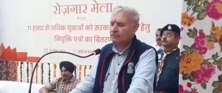 ||Delhi||Nancy Kaushik||अंबाला के SD कॉलेज में रोजगार मेले का आयोजन किया गया। प्रधानमंत्री नरेंद्र मोदी ने वीडियो कांफ्रेंसिंग के माध्यम से रोजगार मेले का उद्घाटन किया। केन्द्रीय सांख्यिकी एवं कार्यक्रम कार्यान्वयन तथा योजना (स्वतंत्र प्रभार) राज्य मंत्री राव इंद्रजीत सिंह आयोजित पीएम रोजगार मेले में बतौर मुख्य अतिथि शिरकत करने पहुंचे। भारत सरकार द्वारा 71 हजार से अधिक युवाओं को सरकारी नौकरी देने हेतु नियुक्ति पत्र वितरण किए गए। मंत्री राव इंद्रजीत सिंह ने दीप प्रज्वलित कर कार्यक्रम की शुरुआत करी। केंद्रीय मंत्री राव इंद्रजीत सिंह ने इसके लिए प्रधानमंत्री नरेंद्र मोदी की जमकर सराहना की। इस मौके पर केंद्रीय मंत्री ने नियुक्ति पत्र प्राप्त करने वाले युवाओं को बधाई दी। अंबाला रेलवे मंडल के DRM सहित सभी अधिकारी इस कार्यक्रम में मौजूद रहे।