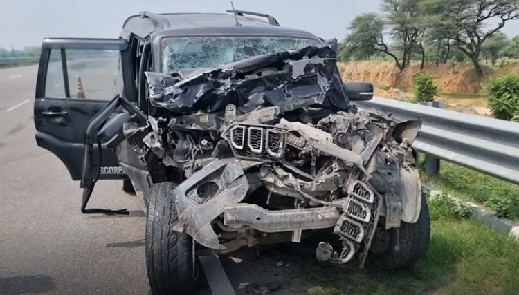 महेंद्रगढ़ के गांव सुरजनवास के नजदीक नेशनल हाईवे 152डी पर रात को स्कॉपियों ने आगे चल रहे ट्रक को टक्कर मार दी, जिससे तीन लोगों की मौत हो गई और एक गंभीर रूप से घायल हो गया है। घायल को महेंद्रगढ़ सिविल अस्पताल में प्राथमिक उपचार देने के बाद हायर सेंटर रेफर कर दिया। पुलिस ने दो लोगों की पहचान सनी उर्फ तजेंद्र सिंह और नायाब सलमानी के रूप में की है। ये दोनों ही पंजाब राज्य के जालंधर शहर के गुरुनाकपुरा के बताए जाते हैं। दो मृतकों की पहचान अभी तक नहीं हो पाई है। बताया जा रहा है कि ये लोग अजमेर से जालंधर जा रहे थे। अंदेशा जताया जा रहा है कि स्कॉर्पियों ड्राइवर को नींद की झपकी आंने से यह हादसा हुआ है। देर रात काले रंग की स्कॉपियों में सवार होकर चार लोग नेशनल हाईवे 152डी से अजमेर से जालंधर जा रहे थे। उनके आगे सुप्रीम लॉजिस्टिक्स कंपनी का ट्रक जा रहा था। गांव सुरजवास के नजदीक स्कॉर्पियों गाड़ी का अचानक संतुलन बिगड़ गया और उसने आगे चल रहे ट्रक को टक्कर मार दी। इससे पूरी स्कॉर्पियों क्षतिग्रस्त हो गई और उसके अंदर बैठे सभी गंभीर रूप से घायल हो गए। लोगों की मदद से उनको गाड़ी से बाहर निकाला गया और उसके बाद चारों घायलों को नागरिक अस्पताल महेंद्रगढ़ पहुंचाया गया जहां पर चिकित्सकों ने नायाब सलमारी और दो अन्य को मृत घोषित कर दिया जब कि सनी उर्फ तेजेंद्र सिंह की गंभीर हालत को देखते हुए हायर सेंटर के लिए रेफर कर दिया। शवों को अस्पताल के शवगृह में रखावा दिया गया है। पुलिस परिजनों के आने बाद ही आगे की कार्रवाई करेगी। पुलिस ने ट्रक को अपने कब्जे में ले लिया जबकि ड्राइवर अभी फरार है।