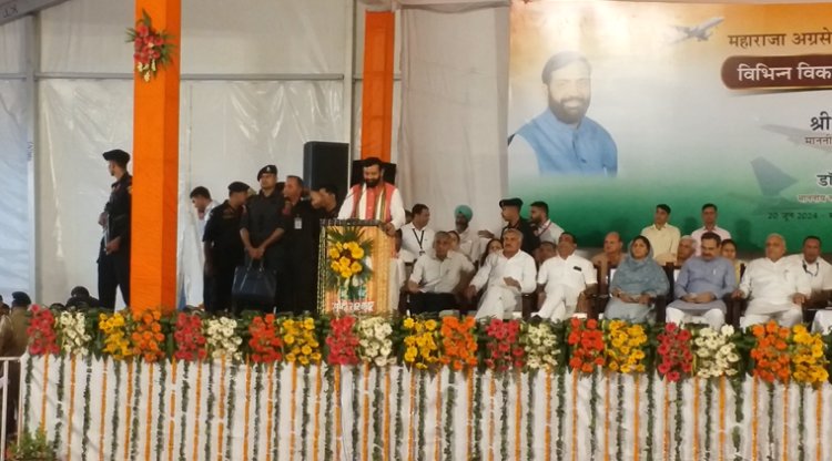 [PARVEEN KUMAR , HISAR] मुख्यमंत्री आज हिसार में लगभग 544 करोड़ रुपए की लागत से महाराजा अग्रसेन हवाई अड्डे के विस्तारीकरण परियोजनाओं सहित अन्य विकास परियोजनाओं का शिलान्यास एवं उद्घाटन करने उपरांत उपस्थित लोगों को संबोधित कर रहे थे। इस अवसर पर मुख्यमंत्री ने प्रदेश के लोगों विशेषकर हिसार निवासियों को बधाई देते हुए कहा कि महाराजा अग्रसेन के नाम पर बने इस डॉमेस्टिक एयरपोर्ट में 339 करोड़ रुपए की 9 विभिन्न परियोजनाओं का उद्घाटन किया गया है।