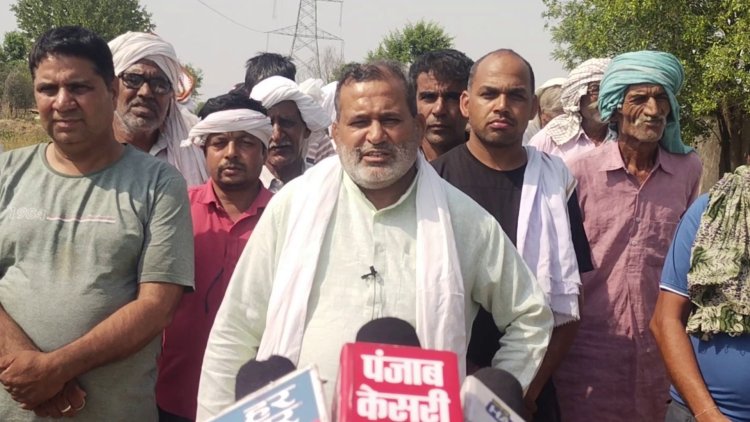 हाईटेंशन बिजली टावर के विरोध में किसानों का फूटा गुस्सा, नारेबाजी कर जताया रोष