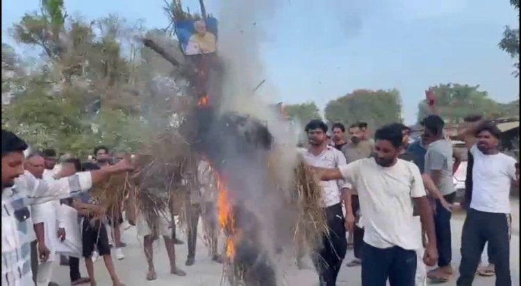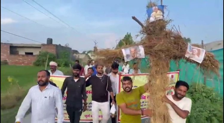 रादौर || कैथल में राजपूत समाज के लोगों पर हुए लाठीचार्ज व सम्राट मिहिर भोज की प्रतिमा पर उनके नाम के साथ गुर्जर लिखने पर भाजपा सरकार के प्रति राजपूत समाज का गुस्सा थमने का नाम नहीं ले रहा है। प्रदेश में राजपूत बहुल गांव में प्रतिदिन सरकार के पुतले फूंक विरोध जताया जा रहा है, वही गांव में भाजपा नेताओं की नो एंट्री के बैनर भी लगाए जा रहे है। इसी कड़ी में रादौर के गांव नाचरौन में राजपूत समाज के लोगों ने गांव के अन्य लोगों के साथ मिलकर मुख्यमंत्री मनोहरलाल, शिक्षा मंत्री कवंरपाल गुर्जर व विधायक लीलाराम गुर्जर का पुतला फूंका। साथ ही गांव में भाजपा नेताओ की नो एंट्री का बोर्ड भी लगाया। जिसमें चेतावनी दी गई कि अगर कोई भाजपा नेता गांव में आता है तो उसे बलपूर्वक गांव से बाहर का रास्ता दिखाया जाएगा और काले झंडे दिखाए जाएगें।