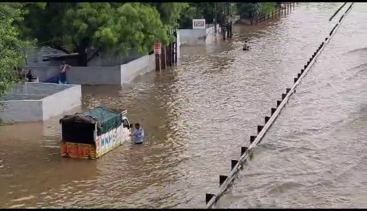 साइबर सिटी में हुई मूसलाधार बारिश के बाद शहर के निचले इलाकों और नेशनल हाईवे पर भारी जल भराव