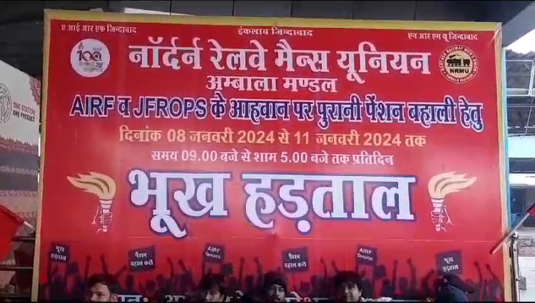अम्बाला || NRMU और URMU पुरानी पेंशन की बहाली को लेकर चार दिन की भूख हड़ताल पर ! दोनो यूनियन के अधिकारी और कर्मचारी सरकार द्वारा नई पेंशन स्कीम के विरोध में चार दिन की भूख अड़ताल पर बैठ गए है ! आज दोनो यूनियन के कर्मचारी अंबाला कैंट रेलवे स्टेशन के गेट नंबर एक और UTS काउंटर पर भूख हड़ताल पर बैठ गए है ! इस मौके पर भारी संख्या में कर्मचारियों ने इस भूख हड़ताल में हिस्सा लिया ! महिलाओं ने भी इस भूख हड़ताल में हिस्सा लिया ! इस मौके पर दोनो यूनियन के कर्मचारियों ने सरकार के खिलाफ जमकर नारेबाजी भी की ! उन्होंने ने सरकार को चेतावनी भी दी है कि अगर उनकी मांगे पूरी नहीं की गई तो फिर केंद्र जनरल सेक्रेटरी के जो भी आदेश होने उसके अनुसार करवाई की जायेगी अगर उन्होंने कहा कि स्ट्राइक पर जाना है तो स्ट्राइक की जायेगी !