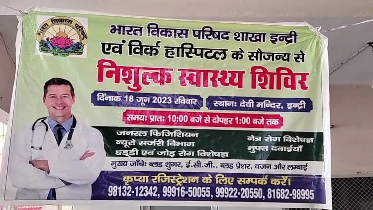 इन्द्री || भारत विकास परिषद शाखा इन्द्री के सौजन्य से देवी मंदिर में एक चिकित्सा शिविर का आयोजन किया गया। इस चिकित्सा शिविर में विभिन्न प्रकार की बीमारियों की जांच की गई तथा कई प्रकार के टैस्ट किए गए। इस मौके पर पूर्व राज्य मंत्री एवं ओबीसी मोर्चा के प्रदेशाध्यक्ष कर्ण देव कांबोज ने मुख्य अतिथि के रूप में शिरकत की। कार्यक्रम में पहुंचने पर पूर्व मंत्री का परिषद के पदाधिकारियों द्वारा भव्य स्वागत किया गया। इस अवसर पर कर्ण देव कांबोज ने कहा कि भारत विकास परिषद द्वारा यह एक नेक कार्य किया गया है। किसी जरूरतमंद की मदद करना एक नेक काम है। हमारे शास्त्रों में भी नर सेवा को नारायण सेवा के समान माना गया है। उन्होंने कहा कि आरएसएस की पूरे देश में लगभग 180 विभिन्न प्रकार की समाजसेवी संस्थाएं है जोकि पूरे देश में सामाजिक कार्य करती है।