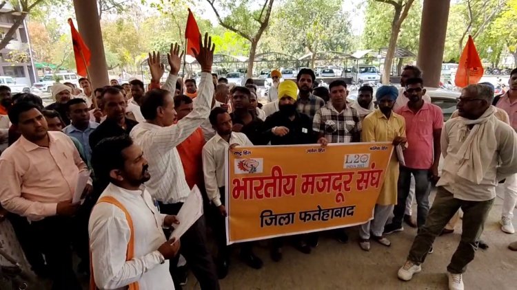 फतेहाबाद में आज भारतीय मजदूर संघ के द्वारा अपनी मांगों को लेकर धरना प्रदर्शन किया गया। नारेबाजी करते हुए भारतीय मजदूर संघ के बैनर तले कर्मचारी फतेहाबाद के लघु सचिवालय पहुंचे। कर्मचारियों के द्वारा प्रधानमंत्री के नाम फतेहाबाद जिला प्रशासन को मांगपत्र सौंपा गया। मीडिया से बातचीत करते हुए अमित शर्मा जिला संगठन मंत्री ने मीडिया से बातचीत में कहा कि आज जिला स्तर पर भारतीय मजदूर संघ के द्वारा प्रदर्शन किया जा रहा है और अपनी मांगों को लेकर ज्ञापन दिया गया है।