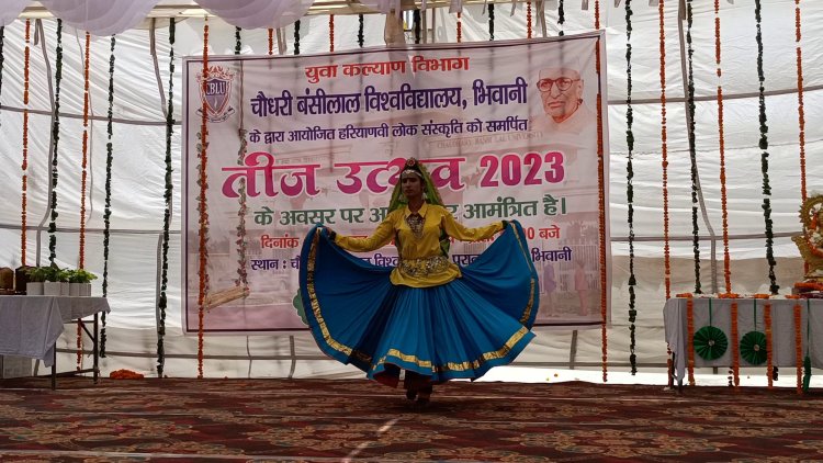 चौ. बंसीलाल विश्वविद्यालय में तीज के मौके पर हरियाणली संस्कृति से ओत-प्रोत गीत, संगीत, रागिनी व त्यौहारिक कथाएं गाकर त्यौहार के उल्लास को बढ़ाने का कार्य किया। इस मौके पर चौ. बंसीलाल विश्वविद्यालय की कुलसचिव ऋतु सिंह ने बताया कि सावन के माह में हरियाणा का पारंपरिक त्यौहार तीज धूमधाम से मनाया जाता है। आज इस त्यौहार को विश्वविद्यालय स्तर पर आयोजित किया जा रहा है। उन्होंने कहा कि विद्यार्थियों, अध्यापकों व सामाजिक परिवेश में चारों तरफ फैली हरियाली के बाद माहौल तीज के मौके पर उल्लासपूर्वक हुआ है। आज हरियाणा कला परिषद से जुड़े कलाकारों ने हरियाणवी विधाओं से जुड़ी प्रस्तुतियां भी मंच के माध्यम से दी हैं।