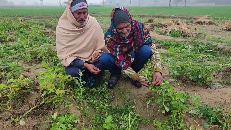 चरखी दादरी - खेत में आलू के पौधे पर लगे टमाटर, किसान खुद भी हैरान!