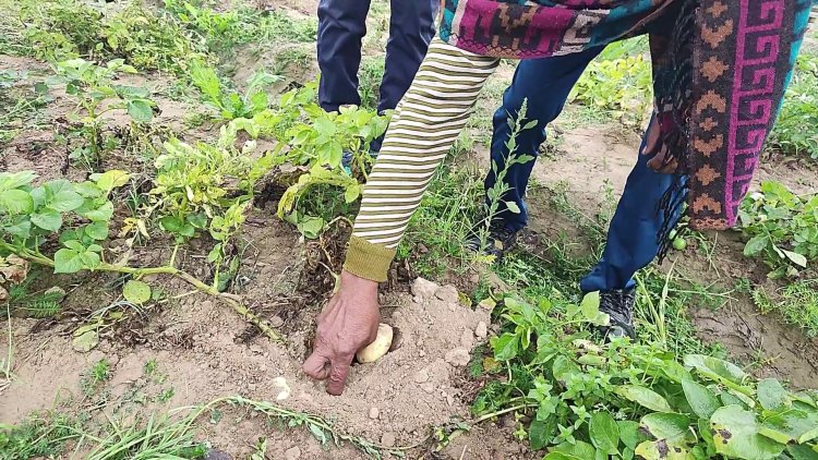 चरखी दादरी || किसान ने खेत में आलू की सब्जी लगाई तो तैयार होने पर आलू के पौधों पर टमाटर लगने शुरू हो गए। आलू के पौधों पर टमाटर लगे देखे तो किसान खुद हैरान हो गया। किसाने सब्जी में टमाटर डाला तो स्वाद भी बिलकुल वैसा ही मिला।