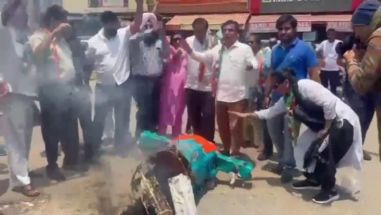 गुरुग्राम || मणिपुर में कुर्की समाज की बेटियों के साथ हुई बर्बरता ने देश को शर्मशार करने का काम किया हैं। देश की बेटियों के साथ हुई बर्बरता को लेकर जिला गुरूग्राम की कांग्रेस इकाई ने केंद्र सरकार के खिलाफ जम कर प्रदर्शन किया और प्रधानमंत्री का पुतला फूंका। कांग्रेस के वरिष्ठ नेता की माने तो बेटी पढ़ाओ बेटी बचाओ का नारा देने वाली भाजपा सरकार के राज में बेटियां सुरक्षित नही हैं। मणिपुर की घटना ने साबित कर दिया कि देश में बेटियों का कोई सम्मान नही हैं। मणिपुर में पिछले काफी समय से दंगे हो रहे है, लेकिन केंद्र सरकार गहरी नींद में सोई हुई हैं। गुरुग्राम में कांग्रेस कार्यकर्ताओं ने सरकार का पुतला जला कर प्रधानमंत्री व गृहमंत्री अमित शाह सहित मणिपुर सरकार से इस्तीफा देने की मांग की है। इसके साथ ही देश में महिलाओं की सुरक्षा को लेकर भी सरकार पर कई आरोप लगाऐ।