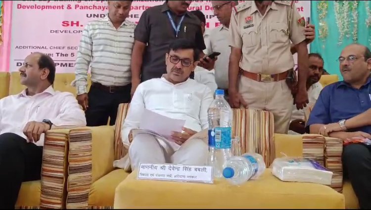 फतेहाबाद में पंचायती राज संस्थाओं के जन प्रतिनिधियों की एक दिवसीय कार्यशाला में पहुंचे कैबिनेट मंत्री देवेंद्र सिंह बबली, कहा सरकार गांवों में शहरों की तर्ज पर सभी मूलभूत सुविधाएं उपलब्ध करवाने के लिए कृतसंकल्प, गांवो के विकास में देश का विकास, ने पंचायती राज संस्थाओं के जन प्रतिनिधियों को गांवों में विकास के पहिये को नहीं रुकने का दिया आश्वासन, कहा विकास कार्यों में धन की नहीं रहने दी जाएगी कमी।