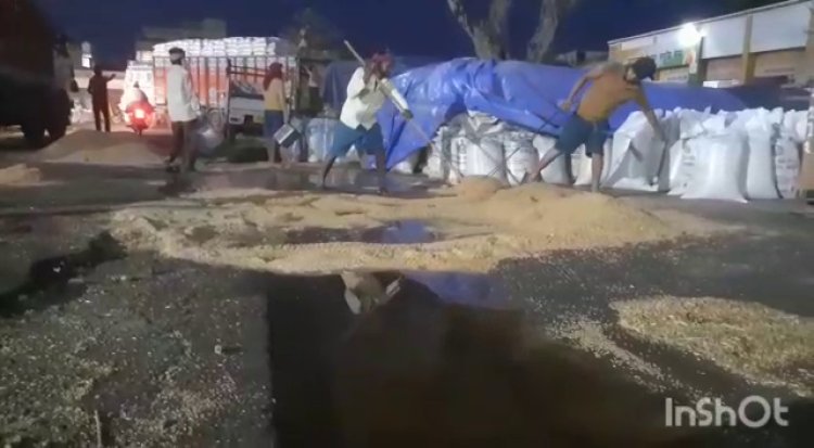 रादौर (कुलदीप सैनी) || रादौर में मौसम के अचानक करवट बदलने के बाद तेज हवाओ के साथ आई बारिश के कारण जहाँ लोगों को गर्मी से राहत मिली। वही बरसात के कारण मंडियों में बिक्री के लिए पंहुची फसल बारिश में भीग गई। उठान गति धीमी होने के कारण मंडी गेहूं की फसल से अटी पड़ी है। करीब आधा घंटा हुई बारिश ने ही मार्किट कमेटी के प्रबंधो की भी पोल खोल कर रख दी। मंडी में खुले आसमान के नीचे भीगी किसानों की मेहनत से किसान दुखी नजर आए।
