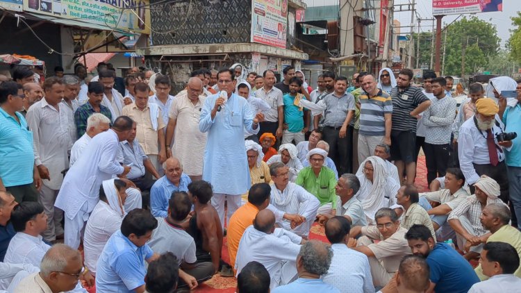 चरखी दादरी || पिछले दिनों हुई बारिश के बाद बाजारों व कॉलोनियों में जलभराव का समाधान नहीं होने से खफा व्यापार मंडल के आह्वान पर दादरी बंद पूर्णतय सफल रहा। सुबह से दुकानें बंद रही और व्यापारियों ने धरना देते हुए प्रदर्शन किया। प्रदर्शन के दौरान विभिन्न राजनीतिक, क्रशर यूनियन, सामाजिक संगठनों के पदाधिकारियों ने भी समर्थन दिया और पानी निकासी के पुख्ता प्रबंध नहीं होने पर कोर कमेटी द्वारा आगामी दिनों में बड़ा आंदोलन करने का निर्णय लिया। प्रदर्शन में समर्थन देने पहुंचे पूर्व मंत्री सतपाल सांगवान का जनप्रतिनिधियों के प्रति गुस्सा देखने को मिला।