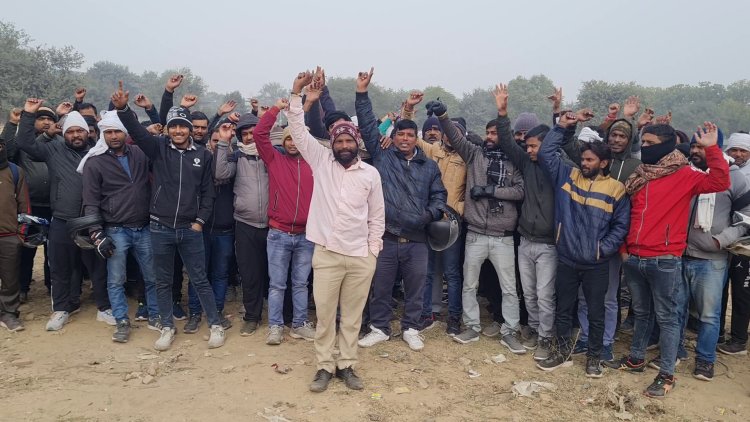 गुरुग्राम || नारेबाजी कर रहे यह लोग कोई और नहीं बल्कि शहर में डोर-टू-डोर कूड़ा उठाने वाली कंपनी इकोग्रीन के ड्राइवर हैं। दरअसल, इन्हें पिछले चार महीने से वेतन नहीं मिला है। आरोप है कि आज जब इन ड्राइवरों ने वेतन दिए जाने की मांग की तो कंपनी के अधिकारियों व सुपरवाइजर पहले तो इन्हें धमकी देने लगे। जब यह लोग धमकी से नहीं डरे तो सुपरवाइजर ने एक ड्राइवर पर हाथ छोड़ दिया और उसे धक्का देकर गिरा दिया। गनीमत रही कि ड्राइवर को मामूली चोट लगी है। इस बात से खफा होकर ड्राइवरों ने अनिश्चितकालीन हड़ताल शुरू कर दी। ड्राइवरों का आरोप है कि वह पुलिस के पास शिकायत लेकर गए थे,लेकिन पुलिस ने उनकी सुनवाई नहीं की।