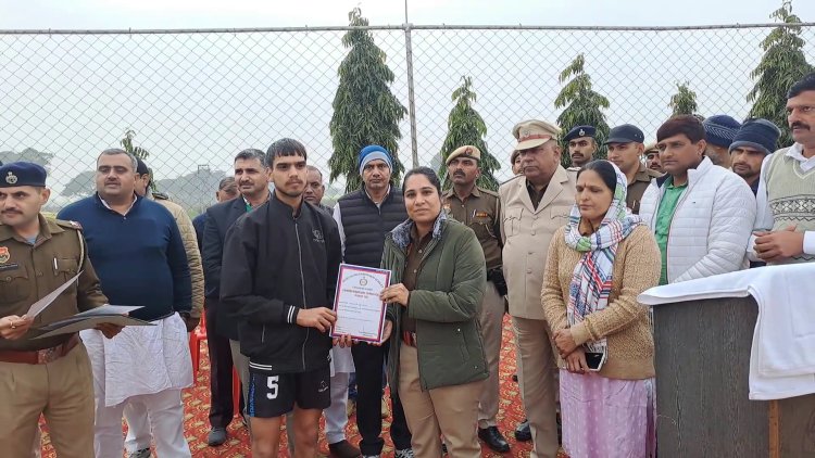 सोमवार को एसपी निकिता गहलोत ने गांव चांदवास में पुलिस टीम और ग्रामीण युवाओं की टीम के बीच मित्रता वालीबाल प्रतियोगिता का आयोजन किया गया। प्रतियोगिता के दौरान हुए तीन राउंड के मुकाबले में ग्रामीणों की टीम विजेता रही। ग्रामीणों की टीम में कप्तान पवन, आशीष, दीपक, मोहित, उज्ज्वल, प्रदीप कुमार, महेश कुमार शामिल रहे। विजेताओं को एसपी नितिका गहलोत ने पुरस्कार देकर सम्मानित किया। कहा कि पुलिस विभाग की ओर से एक नई मुहिम की शुरूआत की गई है। जिसके तहत पुलिस विभाग में तैनात स्पेशल पुलिस आफिसर एसपीओ द्वारा सुबह और शाम के समय युवाओं को खेल गतिविधियों से जोड़कर नशे से दूर रहने के लिए प्रेरित किया जा रहा है। मुहिम के प्रथम चरण में 18 गांव और दादरी शहर के चार वार्ड शामिल किए गए हैं। इन गांवों और वार्डों में एसपीओ सुबह-शाम युवाओं को खेल गतिविधियों में शामिल कर नशे से दूर रख रहे हैं। इसके साथ ही युवाओं को अनुशासन का पाठ भी पढ़ाया जा रहा है।