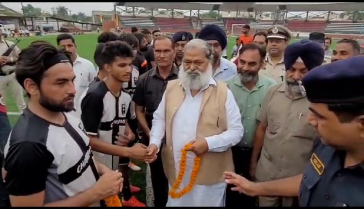 ह मंत्री अनिल विज ने विजेता एवं अन्य टीमों को ट्राफी एवं मेडल देकर सम्मानित किया। उन्होंने खिलाड़ियों को भविष्य के लिए हार्दिक शुभकामनाएं दी। वहीं प्रतियोगिता की आयोजक जिला फुटबाल एसोसिएशन अम्बाला द्वारा गृह मंत्री अनिल विज को भी स्मृति चिन्ह भेंट कर उनका भव्य अभिनंदन भी किया गया। इससे पहले झज्जर और हिसार जिला टीम में हुए फाइल मैच के दौरान गृह मंत्री अनिल विज ने शिरकत की।