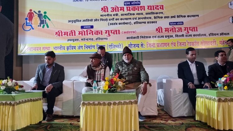 इस कार्यक्रम मे सामाजिक न्याय एवं अधिकारिता मंत्री ओम प्रकाश यादव ने मुख्यातिथि के रूप मे शिरकत की वही कार्यक्रम की अध्यक्षता पूर्व शिक्षा मंत्री रामबिलास शर्मा ने की। हरियाणा के सामाजिक न्याय एवं अधिकारिता मंत्री ओम प्रकाश यादव ने कहा कि दिव्यांगजनों के कल्याण के लिए हरियाणा सरकार निरंतर कार्य कर रही है। हरियाणा सरकार जल्द ही बैटरी चलित तिपहिया साइकिल के लिए 80 फीसदी के बजाय 70 फीसदी दिव्यांगजन को भी इस दायरे में लेगी। इसके अलावा अलावा अभी तक विकलांग पेंशन 70 फीसदी से अधिक विकलांग व्यक्ति को ही मिलती थी। अब इसे भी 60 फीसदी किया जाएगा। इसी प्रकार सरकारी नौकरी में भी हिस्सा बढ़ाने पर विचार किया जा रहा है। सामाजिक न्याय एवं अधिकारिता मंत्री ओम प्रकाश यादव ने कहा कि समाज कल्याण विभाग के माध्यम से दी जाने वाली हर योजना का लाभ उठाने के लिए अब सरकार ने दिव्यांगों को एक ही यूडीआईडी कार्ड जारी किया है, जो पूरे भारत में मान्य है। देश के प्रधानमंत्री की सोच है कि दिव्यांग जनों को सुविधाएं व योजनाएं लेने में किसी प्रकार की परेशानी ना हो। केंद्र के नक्शे कदम पर ही हरियाणा सरकार भी दिव्यांग जनों के लिए अनेक कल्याणकारी योजनाएं चला रही है।