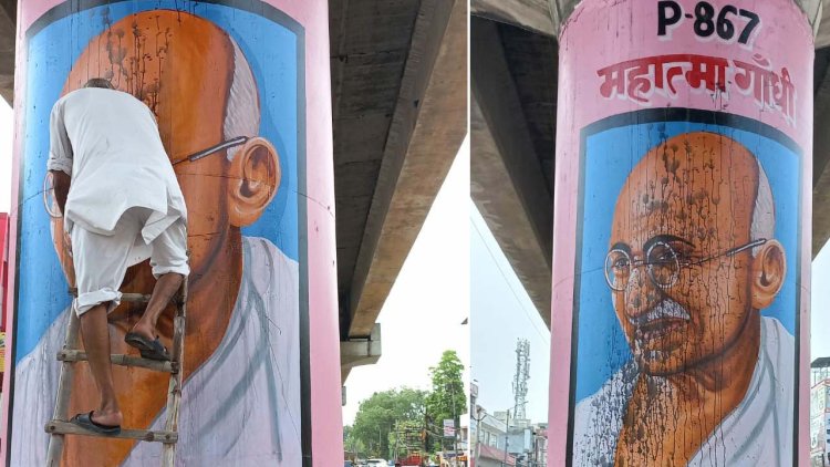 रात के समय मेट्रो पिलर नंबर 867 पर अज्ञात शरारती तत्वों ने राष्ट्रपिता महात्मा गांधी के बड़े चित्र पर काली स्याही फेंक दी। सुबह के समय जब लोग घरों से निकले तो उन्हें इस घटना का पता चला। धीरे-धीरे स्याही फेंके जाने की घटना सोशल मीडिया पर वायरल होने लगी। जिसके बाद शहर के सामाजिक संगठनों ने सिटी थाने पहुंचकर स्याही फेंकने वाले शरारती तत्वों के खिलाफ सख्त कार्रवाई करने की मांग की।