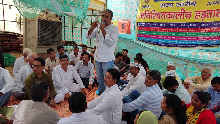 अनुराग ढांडा ने दादरी के लघु सचिवालय परिसर में चल रहे लिपिकों व आशा वर्कर्स धरनों पर समर्थन दिया और मीडिया से बात की। कर्मचारियों के धरनों पर संबोधित करते हुए आप नेता अनुराग ढांडा ने कहा कि आम आदमी पार्टी की सरकार बनने पर पहली कलम से लिपिकों व कर्मचारियों को पूरा वेतन दिया जाएगा। प्रदेश की गठबंधन सरकार से कर्मचारी ही नहीं बल्कि हर वर्ग नाराज है।