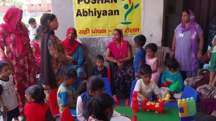 आंगनवाड़ी केंद्र में खुला छोटे बच्चों के लिए प्ले स्कूल