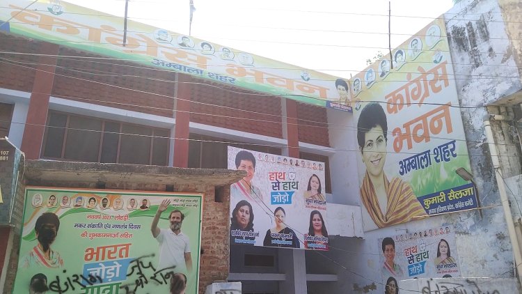 अंबाला शहर में कांग्रेस भवन के बाहर लगे पोस्टरों पर कालिख पोत गई