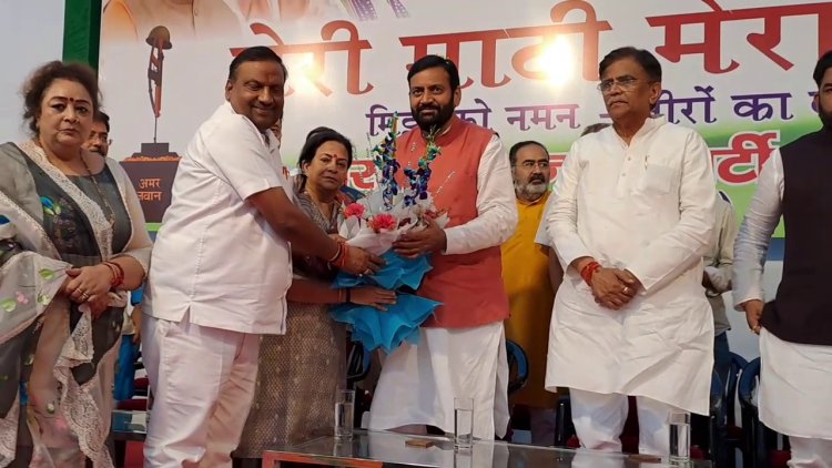 प्रदेश अध्यक्ष बनने के बाद पहली बार गुरुग्राम पहुंचे नायब सिंह सैनी ने कहा कि हमारे शहीदों ने जो सपना देखा था उसे प्रधानमंत्री नरेंद्र मोदी साकार कर रहे हैं। मेरी माटी-मेरा देश के राष्ट्रव्यापी कार्यक्रम के तहत हरियाणा के सभी गांवों व नगर निगम, परिषद व पालिका, सभी वार्डों से एकत्रित की गई यह पवित्र मिट्टी के 311 कलश मंगलवार को दिल्ली में आयोजित होने वाले राष्ट्रीय कार्यक्रम के लिए रवाना किए जाएंगे। शहीदों के गांवों व घरों से मिट्टी लाने वाले कार्यकर्ताओं को बधाई देते हुए नायब सिंह ने कहा कि नई दिल्ली में आयोजित होने वाले राष्ट्रीय कार्यक्रम में आपको हरियाणा का प्रतिनिधित्व करने का अवसर मिला है।