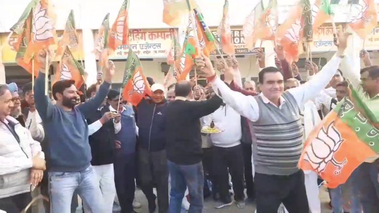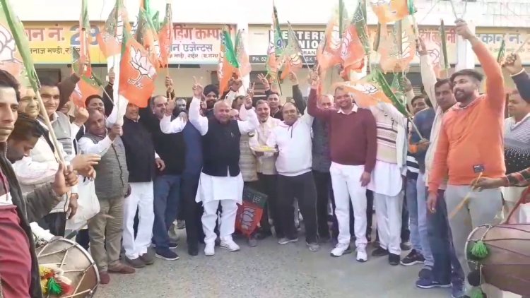रादौर || तीन राज्यों में मिली प्रचंड जीत के बाद भाजपा कार्यकर्ताओं में ख़ुशी का माहौल है। इसी के तहत रविवार को पार्टी कार्यकर्ताओं ने रादौर में भाजपा ओबीसी मोर्चा के प्रदेशाध्यक्ष व पूर्व मंत्री कर्णदेव कांबोज के नेतृत्व में अनाज मंडी में ढोल की थाप पर थिरकते हुए जीत का जश्र मनाया। इस दौरान लड्डू बांटकर कार्यकर्ताओं ने एक दूसरे का मुंह मीठा करवाया और चुनावों में जीत की बधाई दी। मौके पर पूर्व मंत्री ने आप पार्टी पर भी निशाना साधा।