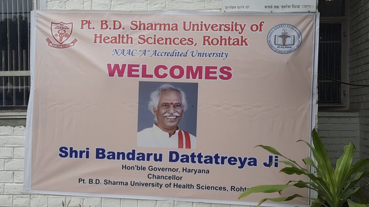 रोहतक - हरियाणा के राज्यपाल बंडारू दत्तात्रेय पहुंचे पीजीएमएस।