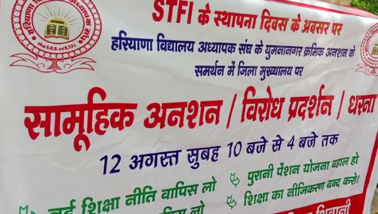 भिवानी || हरियाणा विद्यालय अध्यापक संघ संबंध सर्व कर्मचारी संघ जिला कमेटी द्वारा आज 12 अगस्त को स्कूल टीचर फेडरेशन ऑफ इंडिया की स्थापना दिवस को स्थानीय लघु सचिवालय के सामने झंडा रोहण कर पीटीआई धरना स्थल पर विचार गोष्ठी के रूप में मनाया जिसमें मुख्य रूप से सार्वजनिक शिक्षा को बचाने, निजीकरण को बंद करने, पुरानी पेंशन योजना बहाल करने, चिराग योजना को वापस लेने, नई राष्ट्रीय शिक्षा नीति को वापस लेने, पदों में कटौती को बंद करने सभी हटाए गए पीटीआई, टीचर्स को पूरे वेतन के साथ विभाग में शामिल करने आदि मांग मुद्दों के लिए धरना प्रदर्शन कर स्थापना दिवस मनाया गया। कार्यक्रम के अध्यक्षता जिला प्रधान महेंद्र सिंह व संचालन जिला सचिव राजेश सभरवाल द्वारा किया गया।