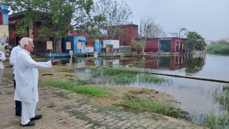 चरखी दादरी || पिछले दिनों से लगातार हो रही बारिश के चलते शिक्षा का मंदिर तालाब बन गया है। सरकार द्वारा संस्कृति मॉडल स्कूल तो बना दिया, यहां के हालात देखकर पता चलता है कि ये स्कूल नहीं बल्कि ताल-तलैया बन गया है। पानी से लबालब मैदान से लेकर कमरों तक कई फुट पानी भर गया है। हालातों को देखते हुए स्कूल प्रबंधन ने एक सप्ताह तक अवकाश की घोषणा करनी पड़ी। वहीं स्कूल प्रबंधन द्वारा जलभराव रोकने को लेकर प्रशासन व शिक्षा विभाग को पत्र लिखे गए हैं। वहीं पूर्व मंत्री सतपाल सांगवान ने स्कूल में जलभराव का निरीक्षण किया और सरकार के सिस्टम को जिम्मेदार ठहराया।