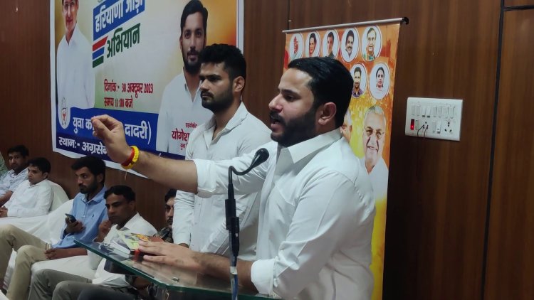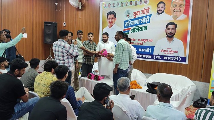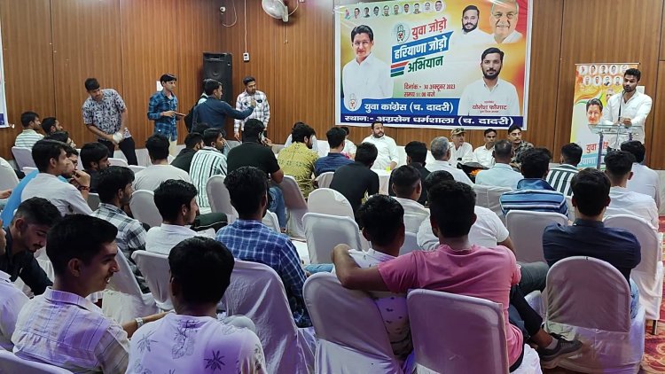 दरअसल हरियाणा युवा कांग्रेस के प्रदेशाध्यक्ष दिव्यांशु बुद्धिराजा सोमवार को दादरी में युवा कांग्रेस के युवा जोड़ो, हरियाणा जोड़ो अभियान के दौरान मीटिंग लेने पहुंचे थे। इस दौरान उन्होंने जहां मीटिंग में बूथ स्तर पर युवाओं को जोड़ने की बात कही वहीं हरियाणा में सरकार बनाने के लिए कांग्रेस के प्रत्येक युवा को फील्ड में उतरने का आह्वान किया। उन्होंने मीडिया से बात करते हुए कहा कि पेपर लीक, बेरोजगारी, अग्निवीर व सरकारी भर्तियों में धांधली सहित सात मुद्दों को लेकर युवा कांग्रेस प्रदेश सरकार को घेरेगी। हरियाणा के युवाओं को एक छतरी के नीचे एकजुट करके युवा कांग्रेस बड़ा आंदोलन चलाएगी। कहा कि युवा कांग्रेस ने हमेशा प्रदेश के युवाओं के मुद्दे धरातल पर उठाए है वहीं विपक्षी पार्टियां धरातल पर कहीं दिखाई नहीं दी।