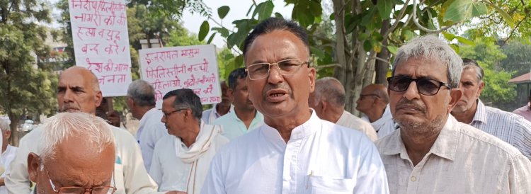 भिवानी || विभिन्न जन संगठनों किसान सभा , सीटू , जनवादी महिला समिति , डी वाई एफ आई व एस एफ आई ने संयुक्त रूप से शहर में प्रदर्शन करके भारत सरकार से मांग की है कि वह अपने प्रभाव का इस्तेमाल करके इजराइल हमास युद्ध बंद करवाए , इजराइल द्वारा गाजा पट्टी में फिलिस्तीनी बच्चों व निर्दोष नागरिकों की निर्मम हत्याओं को बंद करवाए , इस मामले में यूनओ प्रस्ताव को लागू करवाए । इसके लिए सभी संगठन स्थानीय ठाकुर बीरसिंह पार्क में इकठ्ठे हुए , कार्यक्रम की अध्यक्षता किसान सभा के जिला प्रधान रामफल देशवाल ने की तथा मंच संचालन रिटायर्ड बिजली बोर्ड एक्शन सज्जन कुमार सिंगला ने किया ।