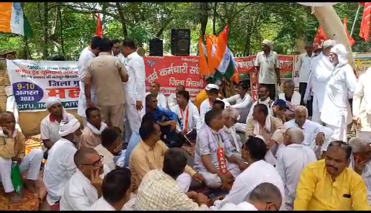 भिवानी || देश की केन्द्रीय ट्रेड यूनियने सीटू, एटक, इन्टक, आल इन्डिया यू टी यू सी, कर्मचारी संगठन सर्व कर्मचारी संघ , कर्मचारी महासंघ, रिटायर्ड कर्मचारी संघ, संयुक्त किसान मोर्चा से अखिल भारतीय किसान सभा, आल इन्डिया किसान खेत मजदूर संगठन के आह्वान पर देशभर में भाजपा की केन्द्र सरकार व भाजपा की राज्य सरकारों की जन विरोधी नीतियों व उनकी साम्प्रदायिक नीतियों के विरोध में जिला हैडक्वाटर पर दो दिन से जारी पड़ाव आज सम्पन हुआ, केन्द्रीय ट्रेड यूनियनों व कर्मचारी संगठनों ने उपायुक्त के मार्फत प्रधानमंत्री को ज्ञापन भेजा। आज के कार्यक्रम की संयुक्त अध्यक्षता उपरोक्त संगठनों के कृष्ण बड़सी, फूल ंिसह इन्दौरा, फूल सिंह, सुदेश रिवासा, रामफल देशवाल, राजेश जांगड़ा, सहदेव रंगा ने संयुक्त रूप से की। मंच संचालन सीटू जिला सचिव अनिल कुमार ने किया। इस मौके पर मणिपुर व मेवात में हुई साम्प्रदायिक हिंसा के खिलाफ प्रस्ताव पास किया।