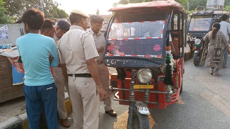 ट्रैफिक पुलिस ने 50 से अधिक ई-रिक्शा व ऑटो के चालान काटे