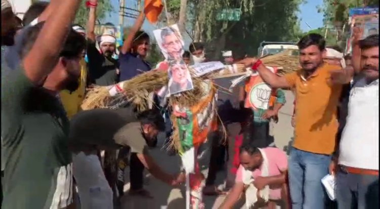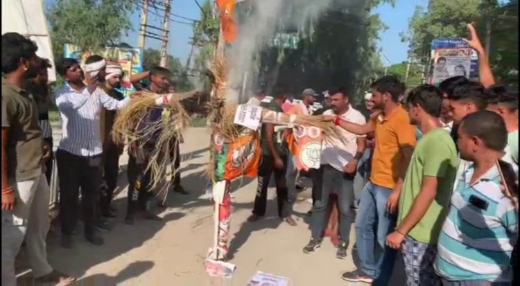 कैथल लाठीचार्ज के विरोध में रादौर में राजपूत समाज के युवाओं ने फूंका भाजपा का झंडा व शिक्षा मंत्री का पुतला, बोले अब गांव में बंद होगी भाजपा नेताओं की एंट्री