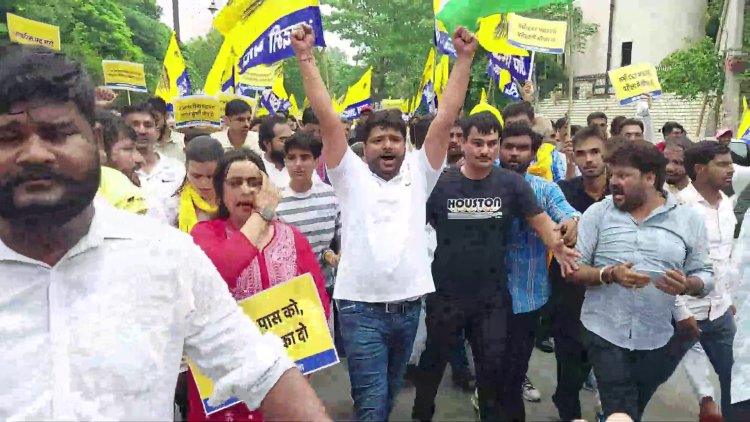 आम आदमी पार्टी की यूथ विंग का भाजपा प्रदेश कार्यालय पर प्रदर्शन