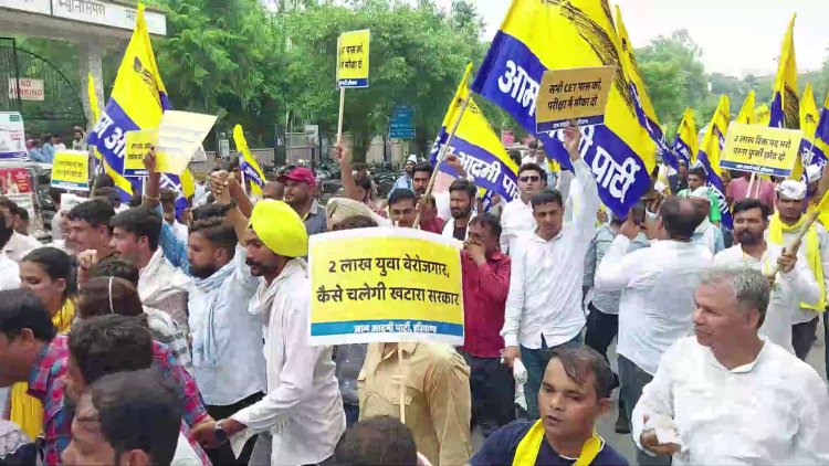 रोहतक || हरियाणा में सीईटी क्वालीफाई किया युवाओं को लेकर और रोजगार को लेकर आम आदमी पार्टी की यूथ विंग ने आज रोहतक में प्रदर्शन किया मानसरोवर पार्क से प्रदर्शन करते हुए भाजपा के प्रदेश कार्यालय में पहुंचे कार्यकर्ताओं को पुलिस ने बेरिगेट्स लगाकर रोका यही नहीं कार्यकर्ता आगे बढ़ने लगे तो हल्की धक्का-मुक्की भी हुई पार्टी के यूथ इकाई के प्रदेश अध्यक्ष मनीष यादव का कहना है कि जब तक सरकार नहीं सुनेगी यूं ही युवा सरकार के कान खोलने का काम करेंगे यही नहीं महिलाओं के शारीरिक परीक्षण को लेकर भी आपकी यूथ विंग ने सवाल उठाए हैं उन्होंने कहा कि जब दुर्गा शक्ति की भर्ती बिना शारीरिक आप जानते हो सकती है तो इन विभागों में महिलाओं के साथ अधिक मापदंड की जरूरत क्यों पड़ी यह महिलाओं का अपमान है जो बर्दास्त नहीं किया जाएगा।